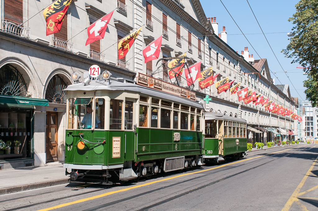 Circulations publiques d’été entre la place des Nations, les gares de Cornavin et des Eaux-Vives et Carouge, via le centre-ville.